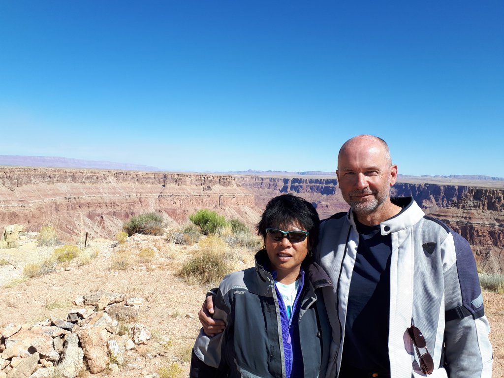 After seeing the north rim of the Grand Canyon a few days earlier, we rode our dirt bikes from our campground to the north rim again, via a Bureau of Land Management (BLM) road. But this time, no passes or fees were required. It was about 40kms of blissful dirt road, to the rim of the Grand Canyon.