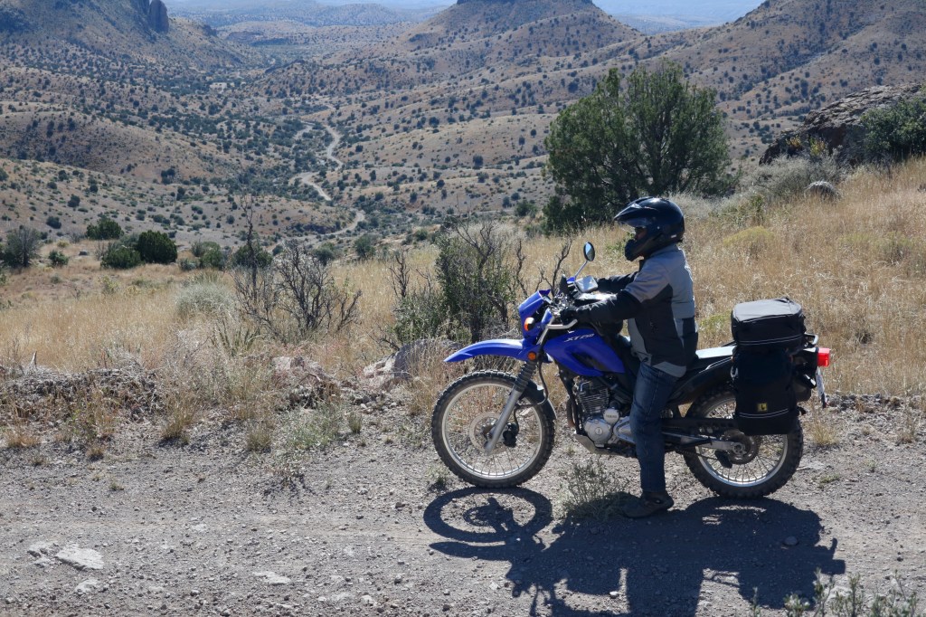 Carrizozo is at the intersection of two fast highways and we wanted to minimize our riding on the fast roads. We went to White Oak, which is almost a ghost town; it has a bar, “No Scum Allowed”… from White Oak, the dirt roads pass into and out of Bureau of Land Management (BLM) areas. We tried to get to specific places on dirt roads, but it was all a bit confusing. From what I understand, the cattle ranchers have an agreement, that they allow traffic through their properties, while the government provides the roads and maintenance, and land for their cattle to graze on. The ranchers have a habit of closing the roads off, putting up No Trespassing signs, and locking the gates. We came across this more than once – and the people we talked to just shrugged their shoulders, and it’s your own choice, if you can access and go through, or to turn around and find another option. We also found confusing, on the recreation maps, the roads are numbered, the actual signs have names… So, that’s a bit tricky too.