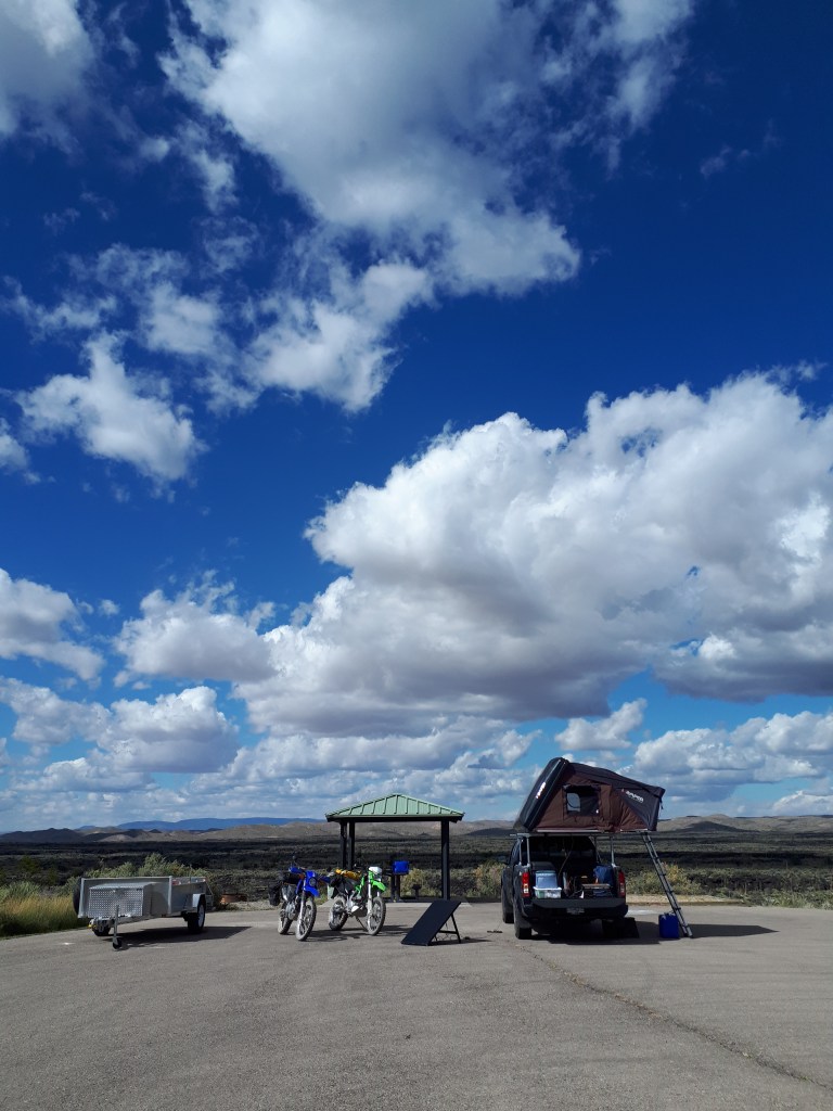 In reverse chronological order, before Truth or Consequences, we were in Carrizozo, camping at Valley of Fires National Campground. From there, we did some riding in the area.
